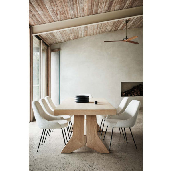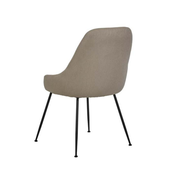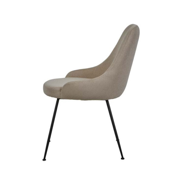 Merging minimalistic inspiration and a touch of vintage charm, the Dane Dining Chair is a functional piece bound to make an impression. The contrasting materials of the Dane add distinct personality to your interiors: sleek metal legs hold a plush upholstered seat with subtle curves and a timeless curved silhouette.