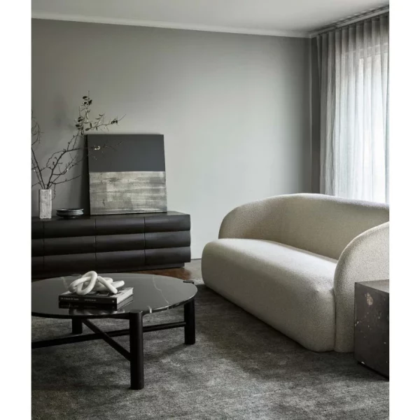 Low and plush, the Kennedy Beckett 3 seater sofa is a study in modern elegance and minimalism. Its curved form and spare lines signify a tasteful choice for any interior aesthetic.