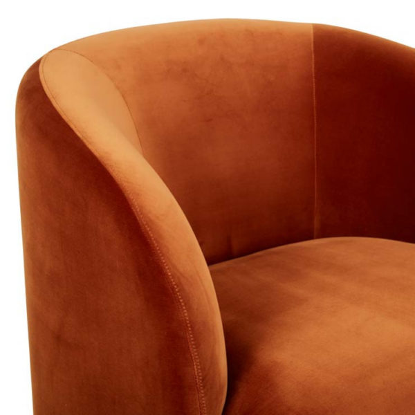 Low and plush, the Kennedy Beckett sofa chair is a study in modern elegance and minimalism. Its curved form and spare lines signify a tasteful choice for any interior aesthetic.