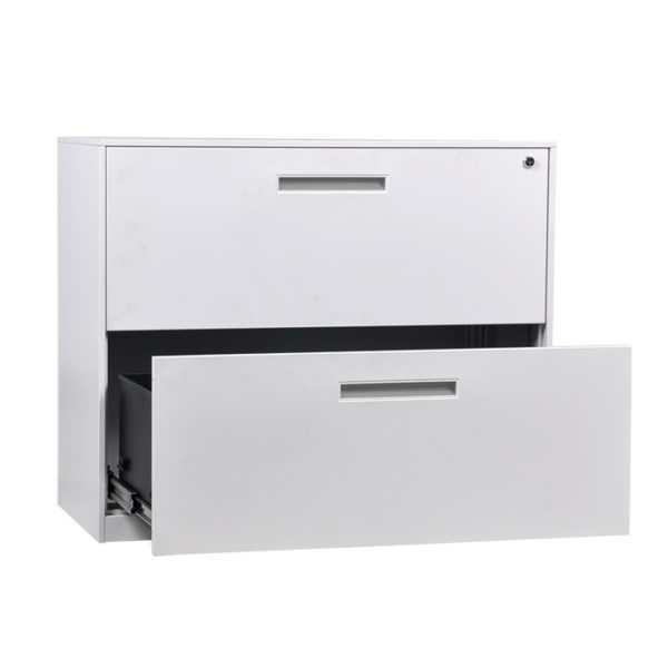 The Lateral Filing Cabinet is constructed for extra strength with anti tilt locking, heavy duty, ball bearing runners and adjustable file divider.
