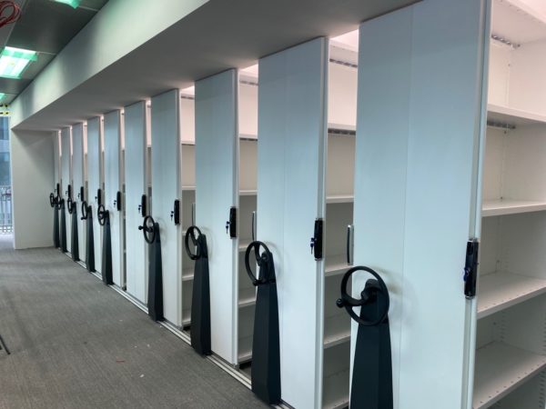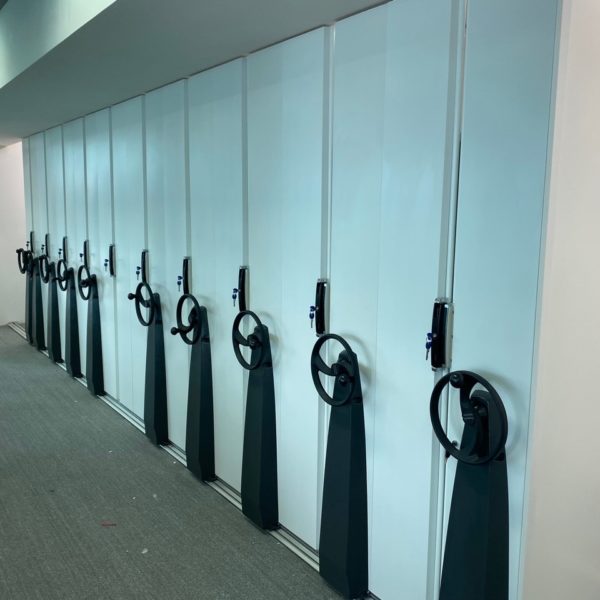 Dexion’s Mekdrive 3 Compactus revolutionises filing and storage systems with advanced technology and design. The Mekdrive 3 Compactus® now has up to 78% more storage capacity with increased width from 2700mm to 4800mm. Enhancements include a modern and unique stylised hand-wheel with integrated spinner handle, providing safer and easier operation. The Mekdrive 3 Compactus® is the lightest mechanically assisted mobile storage system available. It has been designed to keep floor loads to a minimum, a major consideration in commercial office buildings. The Mekdrive 3 Compactus® has an increased system width of four shelving bays, which could previously only be achieved with fixed-track systems.