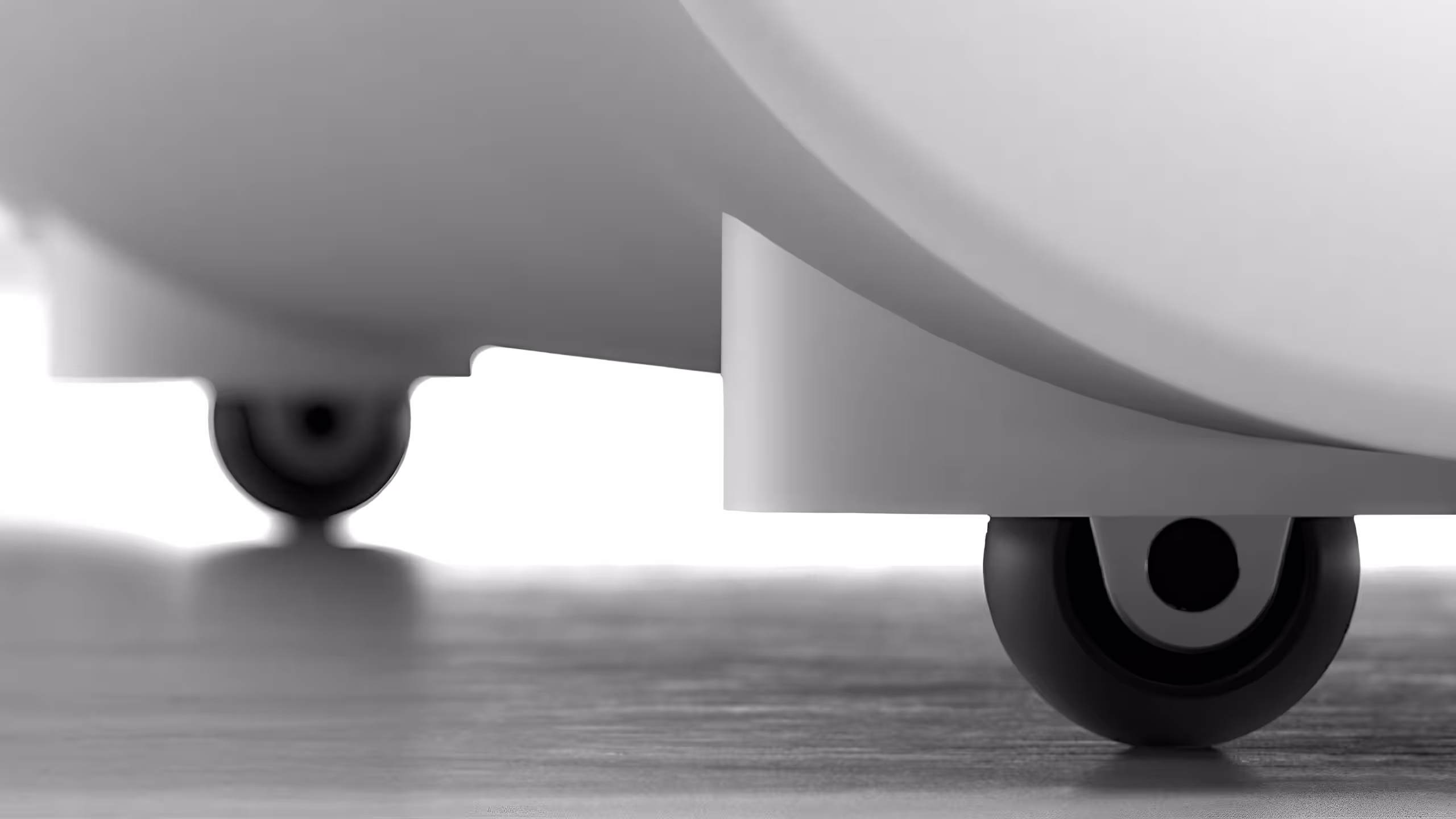 Concealed wheel mobility system, portable and versatile – easy to install, dismantle, and move.