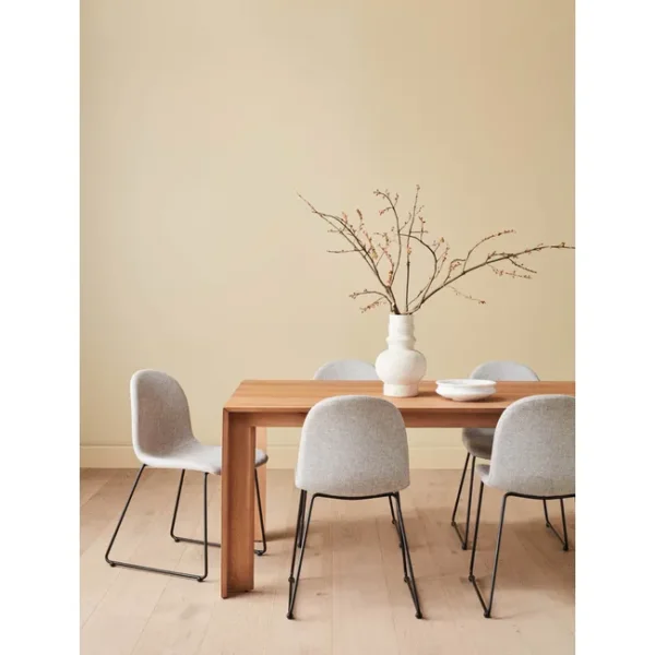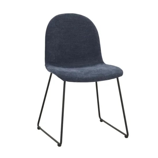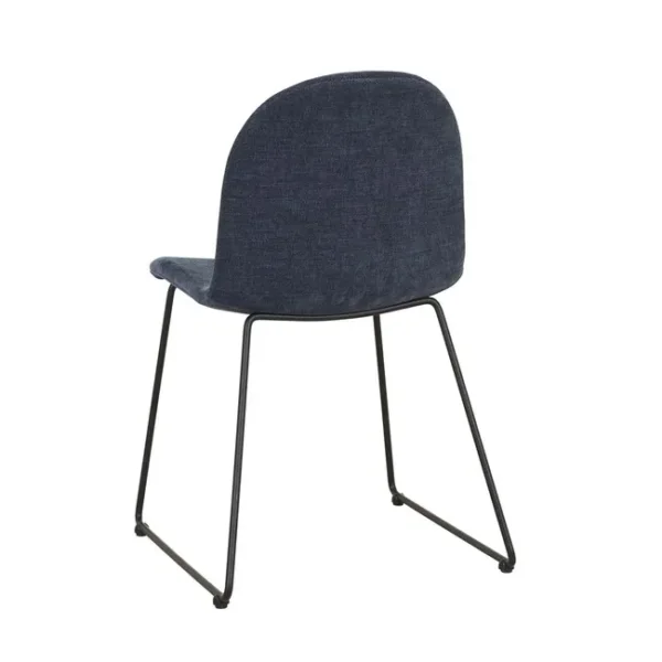 The Smith Sleigh Dining Chair in Copeland Ink and Matt Black is distinguished by its sleek sleigh leg design. Upholstered in Warwick Copeland Ink, this chair combines contemporary aesthetics with comfort, making it a stylish and practical choice for any dining setting.