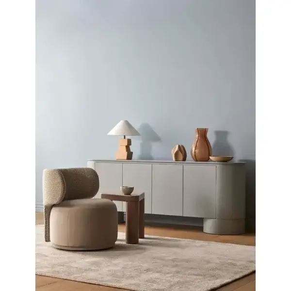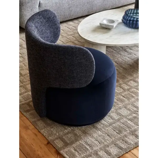 The Tilda Occasional Chair blends modern design with cosy comfort. Its sweeping rounded backrest hugs the body, on a swivel base for a sophisticated and inviting look. Ideal for contemporary interiors, provides visual interest with contrasting upholstery. Perfect for living rooms or bedrooms, it enhances the aesthetic appeal of any space with its elegant design.